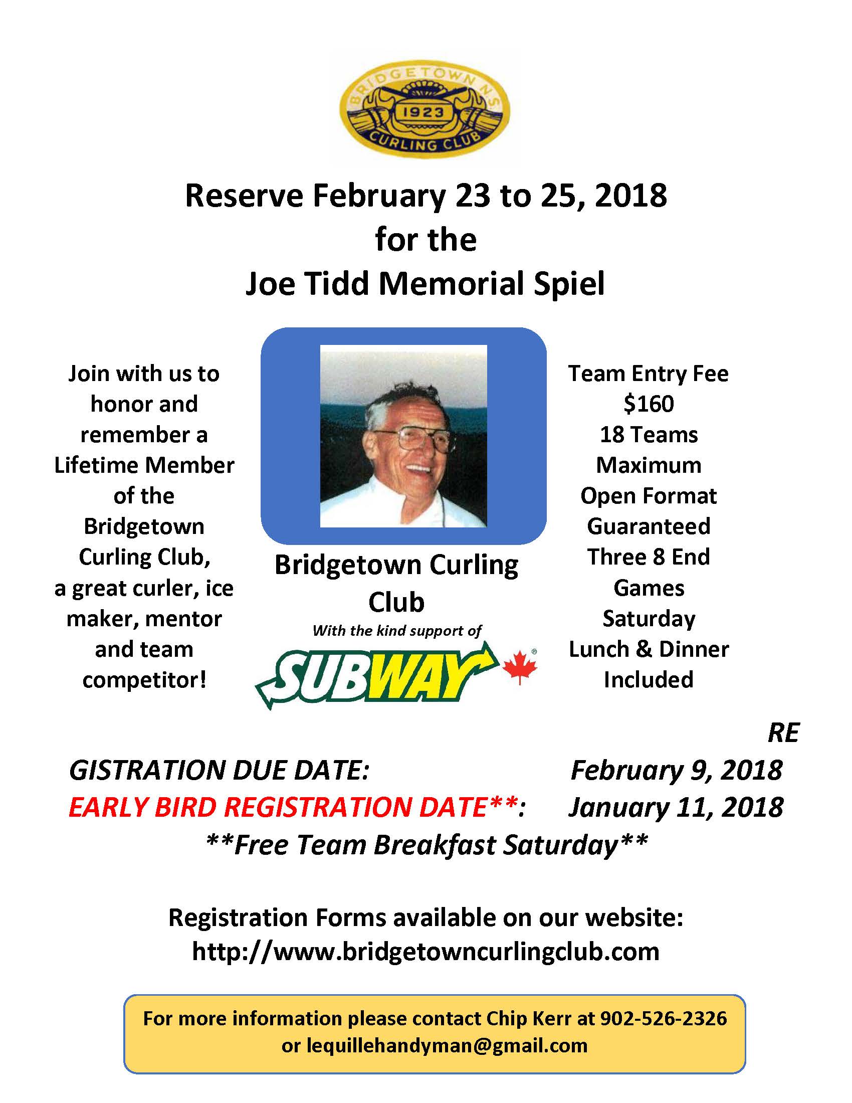 U15 Division: 16 Teams (Boys, Girls or Mixed). The Event is 6 End Games with 8 End Finals. $90/team U18 Division: 16 Teams (Boys, Girls or Mixed). The Event is 8 End Games including Finals. $110/team All teams are guaranteed 3 games. Entry and Payment Deadline: December 20, 2017 To register, please email Dylan Haines […]